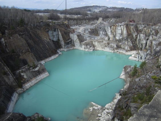 I won’t recount the many trails we rode as we pedaled our way through a 10-mile grand tour of the whole place. Some highlights, though, were Locomotion, Boiler Maker, Fellowship Ring, and Roller Coaster. There’s something for everyone here: Locomotion is fast and fun; Boiler Maker throws some challenging spots into the mix; and Fellowship has enough technical sections to keep any rider happy, plus this sweet section of looping flow through a beautiful forest. Roller Coaster, a fun free-ride trail with a major elevation drop and lots of BC-style built features, puts a smile on the face of anyone who rides it. Throughout the day we found several lookouts that afforded sweeping views of the water-filled quarries below and the valleys and hills of central Vermont continuing out from there.