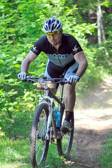 As I made my way out of the aid station and dawdled along in my lowest gear a lone, clean rider rolled down the trail and stopped to wait.  “Hey guys- welcome to Whiteface.  You’re almost there.”  said the rider who I quickly identified as none other than Dave Wiens.  Cool.