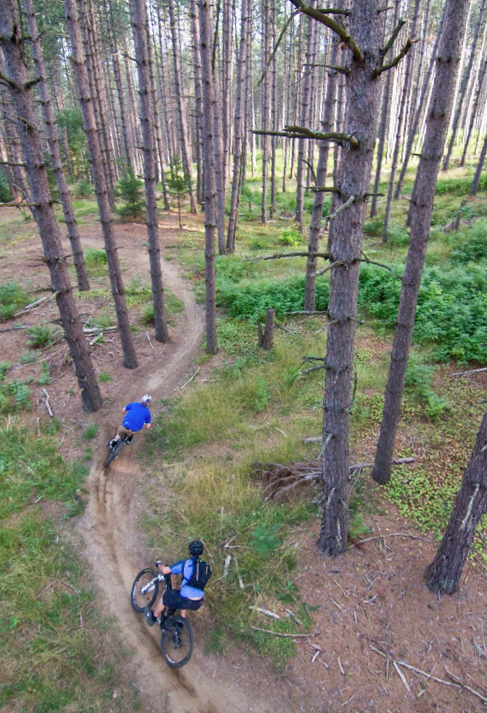 We talked about how to read the trail and how to approach corners. After absorbing as much insight as I could we made our way up to the top of Kitchell for the first of several trips down through the sweeping bermed section. Bermed turns are exaggerated corners, so with less risk of sliding and an increased need to look ahead DOWN the trail Knight recommended we focus on that.