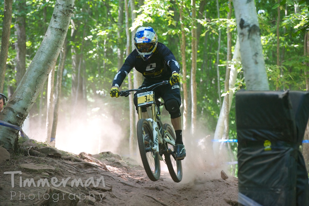 My favorite part of the mountain bike season usually comes in June. No, I’m not talking about the Blackfly hatch, I’m talking about our annual visit from the World’s elite Downhillers. Every year for the last 21 years, they have come to Mont Sainte Anne for a week of racing above the St Lawrence. I love some downhill racing, so I grabbed my camera and headed North for what was the driest and dustiest St Anne I’ve ever seen. After a few days of riding back at home in VT, I went down to see the Windham, NY WC which was even dustier, drier and hotter. I took about 6000 photos and would like to share a few with those who didn’t make the trip.