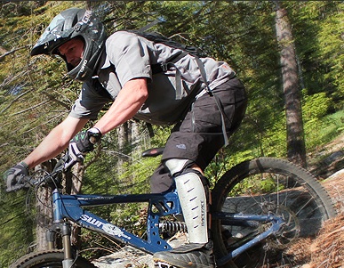 In the past few years The North Face has been tiptoeing into the mountain bike clothing market to cater to the off-season whims of their pro ski athletes, such as Sage Cattabriga-Alosa. Then, at Interbike in Las Vegas, the company jumped in with both feet by announcing a partnership with Pro-Tec and unveiling a line of padded apparel. The centerpiece is the rugged Downieville Colab Short which incorporates a padded inner chamois featuring Pro-Tec’s proprietary flex panels. The whole concept behind this short is to withstand as much abuse as you can throw at it, which is exactly what I did on a recent rainy ride. More than once my tires slipped out around a corner and I landed on my hips. And in one memorable instant I naively rode through a creek with water levels up past my knees and endo-ed onto the far bank. In every instance I was happy to have the added protection of the Downieville Short. The North Face has spared nothing in its design: the outer short is made from bombproof nylon that can literally be hosed off after a ride and is good to go again. (I know this from my muddy experience.) The legs are cut below the knee and are wide enough to accommodate knee pads and the back of the waist is extra high for added protection (and to prevent the dreaded biker’s crack). The camo pockets are water resistant (again I know this from experience) and there are zippered vents in the front to allow for more airflow. The waist band has adjustable Velcro cinch straps and there’s even a goggle wipe sewn into the front hand pocket. As for the inner chamoix, it features Pro-Tec flex padding in the tailbone, hip and thigh areas but, unfortunately, there isn’t any crotch padding – for those riders who like a bit of cushion under the tush, you’ll have to supplement with padded underwear. Also, it needs to be said up front that these shorts ain’t cheap – at $190 they’re more expensive then my bike’s crank set.