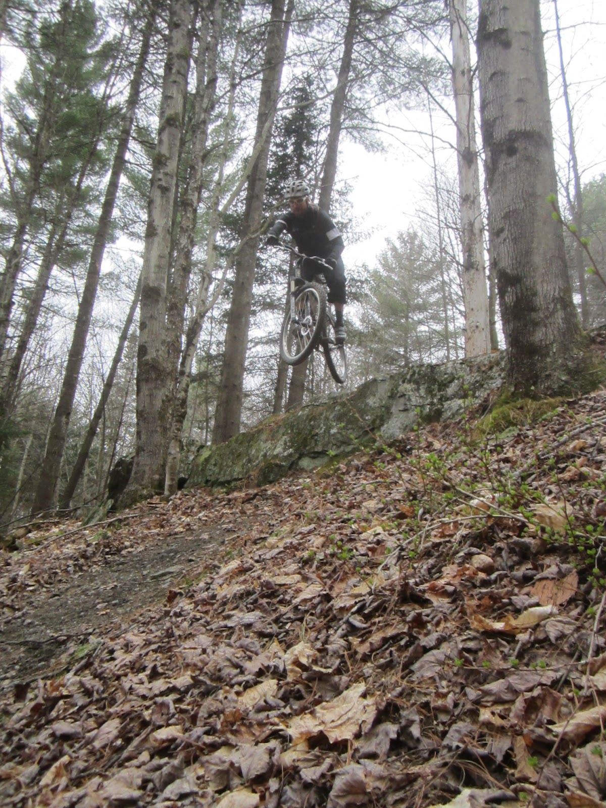 You might also on that first ride have this guy. You know: he’s on a steel, single speed 90’s-era Trek cobbled out of parts from the dumpster behind the local bike shop, and he’s dropping all the cool lines you have to work up to hitting halfway through the season. He’s a good friend so you just watch and try to capture the moment.